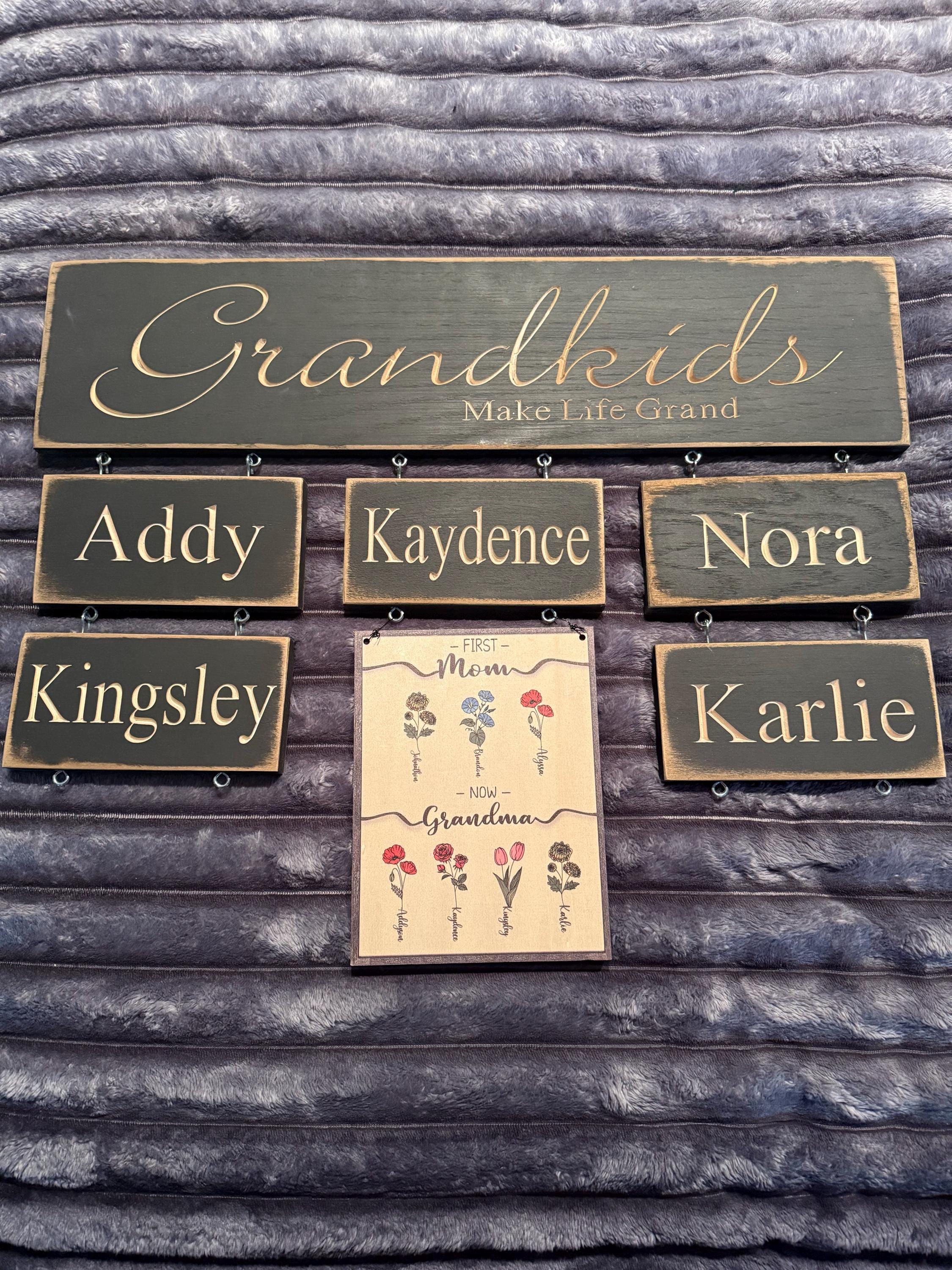 Love these! Slightly different wood from previous purchase but matches from a distance. ‘Nora’ is the newest one in the photo. So happy to be able to add new blended grandchild to my sign.