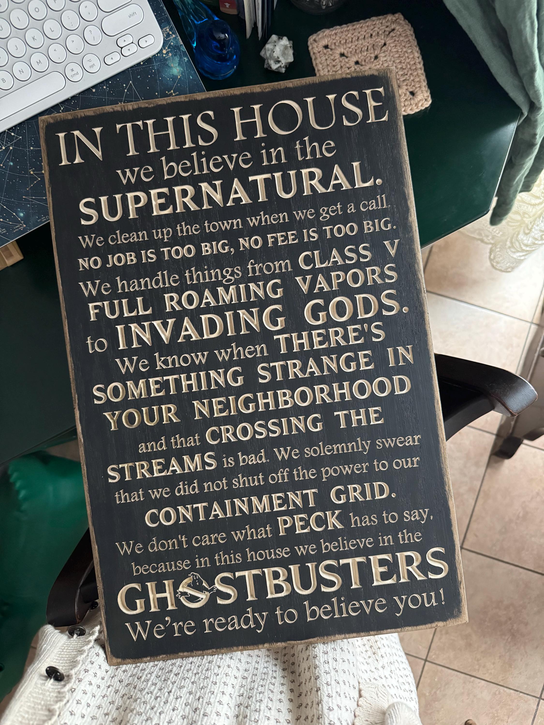 Great sign!! Exactly as described, great quality, the carved letters are very clear and well done. Bought as a gift for my husband, he loves it!